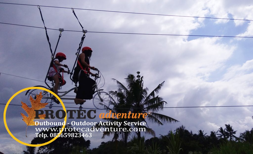 Protec Adventure menawarkan layanan pembuatan Wahana Sepeda Gantung atau Sky Bike, yang merupakan wahana wisata populer untuk berfoto selfie atau instagrmable. Wahana ini harus dipasang dengan memperhatikan penempatan yang menarik, terutama dalam konteks background foto yang dihasilkan. Hal ini penting untuk menciptakan nilai estetika yang tinggi sehingga foto yang diambil memiliki kesan ekstrim, indah, dan luar biasa. Keamanan wahana Sky Bike atau Sepeda Gantung juga menjadi prioritas utama dalam pembuatannya.
